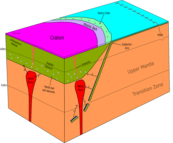 A key aspect of igneous petrogenesis is the source of magma accumulating in a plumbing system. Many of these systems show evidence of magma mixing from distinct geological reservoirs and this therefore raises important questions about geodynamic processes. To further understand these processes I investigated He-C-N isotopic systematics of polycrystalline diamonds to trace the source of volatiles in the mantle. My findings indicate that volatiles sourced from crustal and mantle reservoirs can mix at great depths under diamond-forming conditions. In addition to further constraining diamond petrogenesis and these implications on long-term volatile cycling, these observations highlights how magmas can mix at great depths from distinct sources before becoming emplaced at shallower levels.