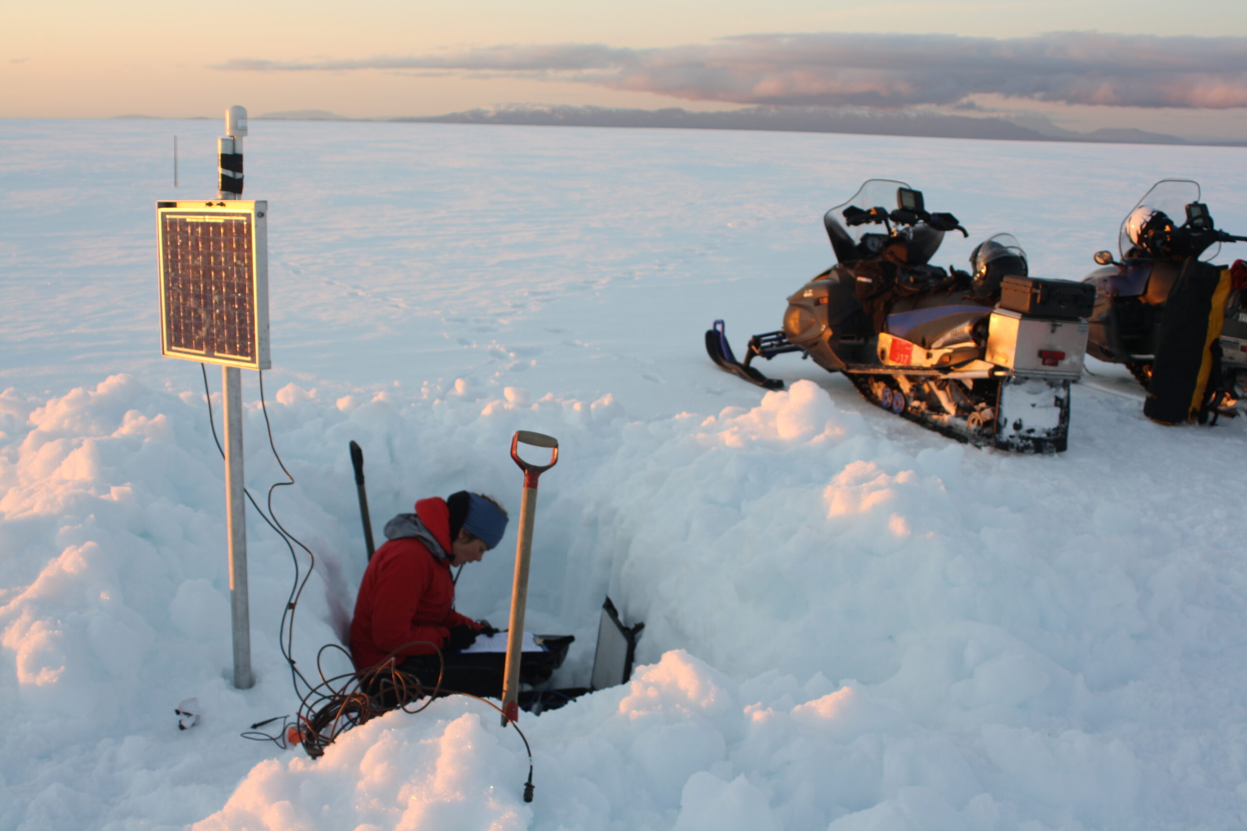Fieldwork in the Icelandic highlands sometimes means using super-jeeps, snow scooters and helicopters